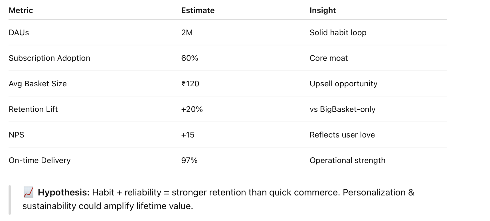 🆚 Competitive edge: Reliability vs. Blinkit/Instamart’s speed-only approach.